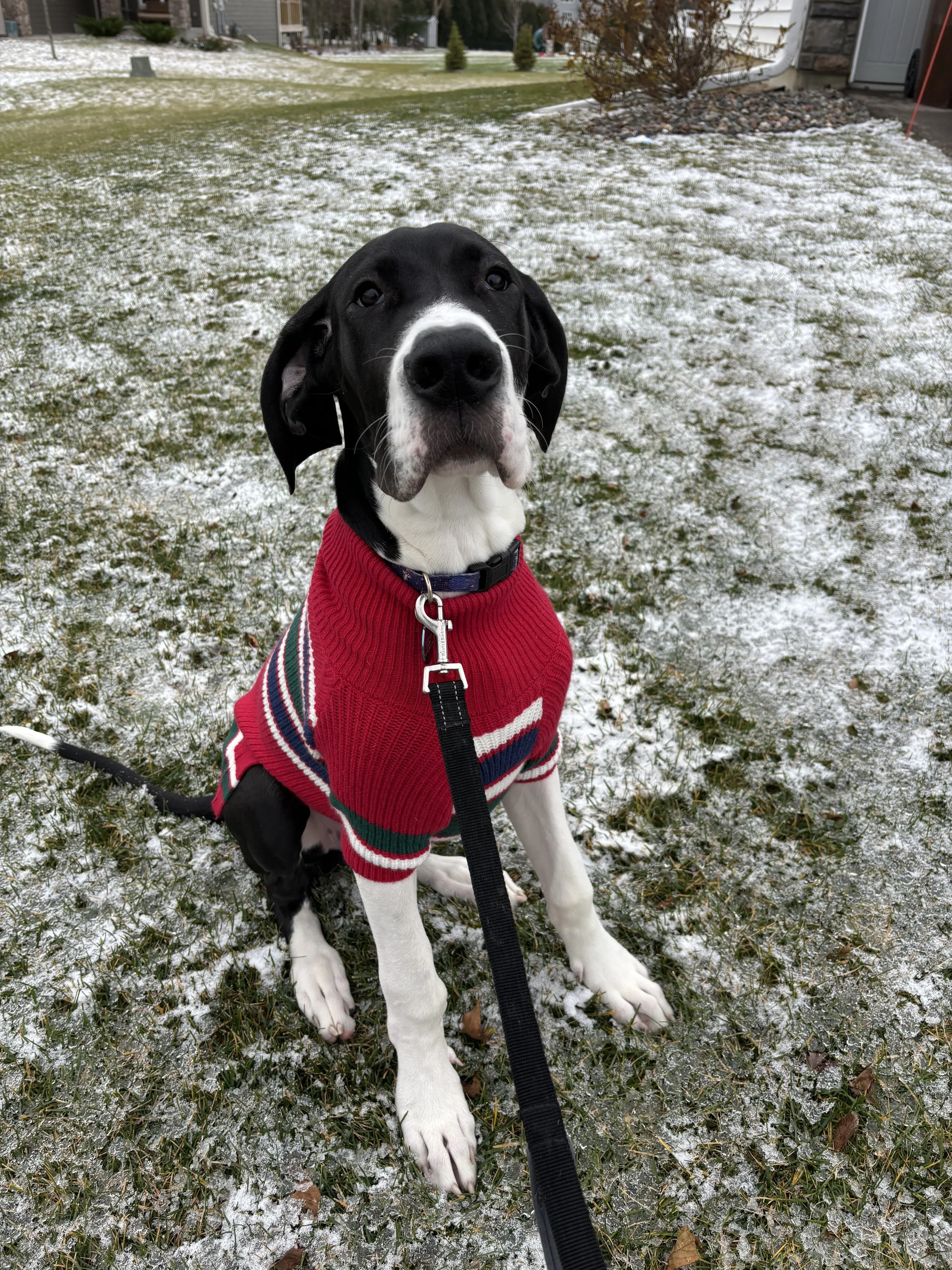 Our five-month-old Great Dane puppy and the king of chaos! Don’t let that innocent face fool you—he keeps us on our toes every single day!